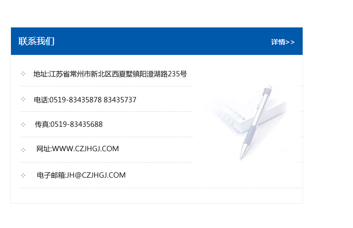 地址:常州市新北區友邦商務大廈1幢16、17層  電話:0519-85101652  傳真:0519-85112595  郵編:213022  網址:www.cz-jiayue_cn.shengmeigao.com  郵箱:xiajifengaa@163.com